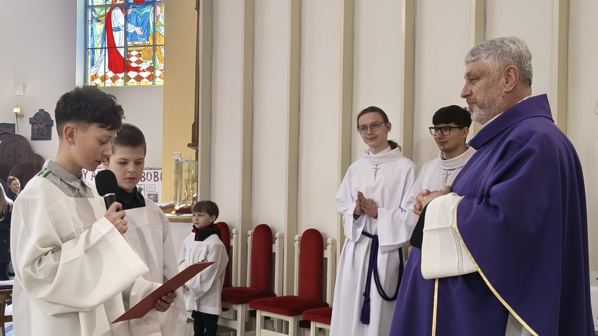 Posługa lektora związana jest z czytaniem Słowa Bożego podczas nabożeństw. Czterech naszych ministrantów starszych, po odpowiednim przygotowaniu, w minioną niedzielę otrzymało błogosławieństwo do tej posługi.