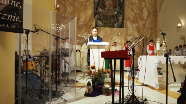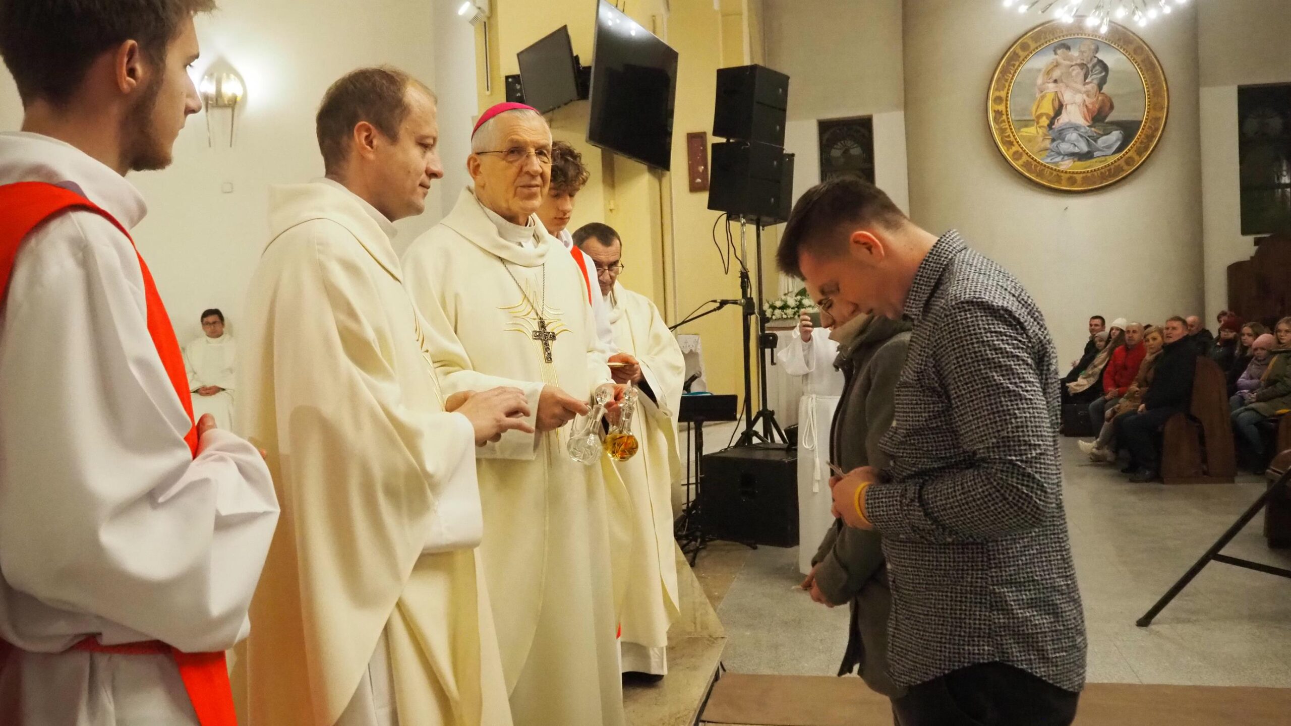 20 listopada w naszym kościele odbyły się II Chełmskie obchody Światowego Dnia Młodzieży. Ich głównym celem było wspólna modlitwa młodych z biskupem a także ich duchowe przygotowanie na spotkanie z Papieżem Franciszkiem w 2023 r. Hasłem wydarzenia były słowa: „Maryja poszła z pośpiechem w góry” Łk 1,39. Uroczystości zaczęły się od Mszy Św., której przewodniczył ks. Bp Mieczysław Cisło. Koncelebransami byli księża z Chełma i okolic. W oprawę liturgiczną zaangażowali się młodzi z oazy (czytanie, psalm oraz procesja z darami), z naszej Rodzinki ŚDM (II czytanie i modlitwa wiernych) oraz ministranci i lektorzy, którzy przygotowali asystę. Śpiew prowadziła schola z Podgórza. Bp Mieczysław w homilii przywołał postać bł. Carlo Acutisa, który w dzisiejszych czasach jest wzorem dla młodych jak można wierzyć we współczesnym świecie. Po liturgii nastąpiła dalsza część uroczystości, którą poprowadził zespół niemaGOtu. Na początku było uwielbienie prowadzone przy wystawionym Najświętszym Sakramencie. Pieśni, świadectwa członków zespołu pozwalały młodym skupić się na modlitwie. W trakcie adoracji młodzież z Rodzinki ŚDM rozdawała cytaty o Maryi z Pisma Św. i ze świętych. Po błogosławieństwie i schowaniu Najświętszego Sakramentu ostatnim punktem uroczystości był koncert zespołu. Muzycy zaśpiewali piosenki ze swojej ostatniej płyty a także hymn ŚDM Kraków 2016 r. Młodzież wyszła z ławek i z wielką radością uczestniczyła w koncercie. Na koniec bisów nie było końca. Młodzi wychodząc z kościoła otrzymali pamiątki z ŚDM Panama oraz ulotki zapraszające młodych na spotkania chełmskich wspólnot młodzieżowych.