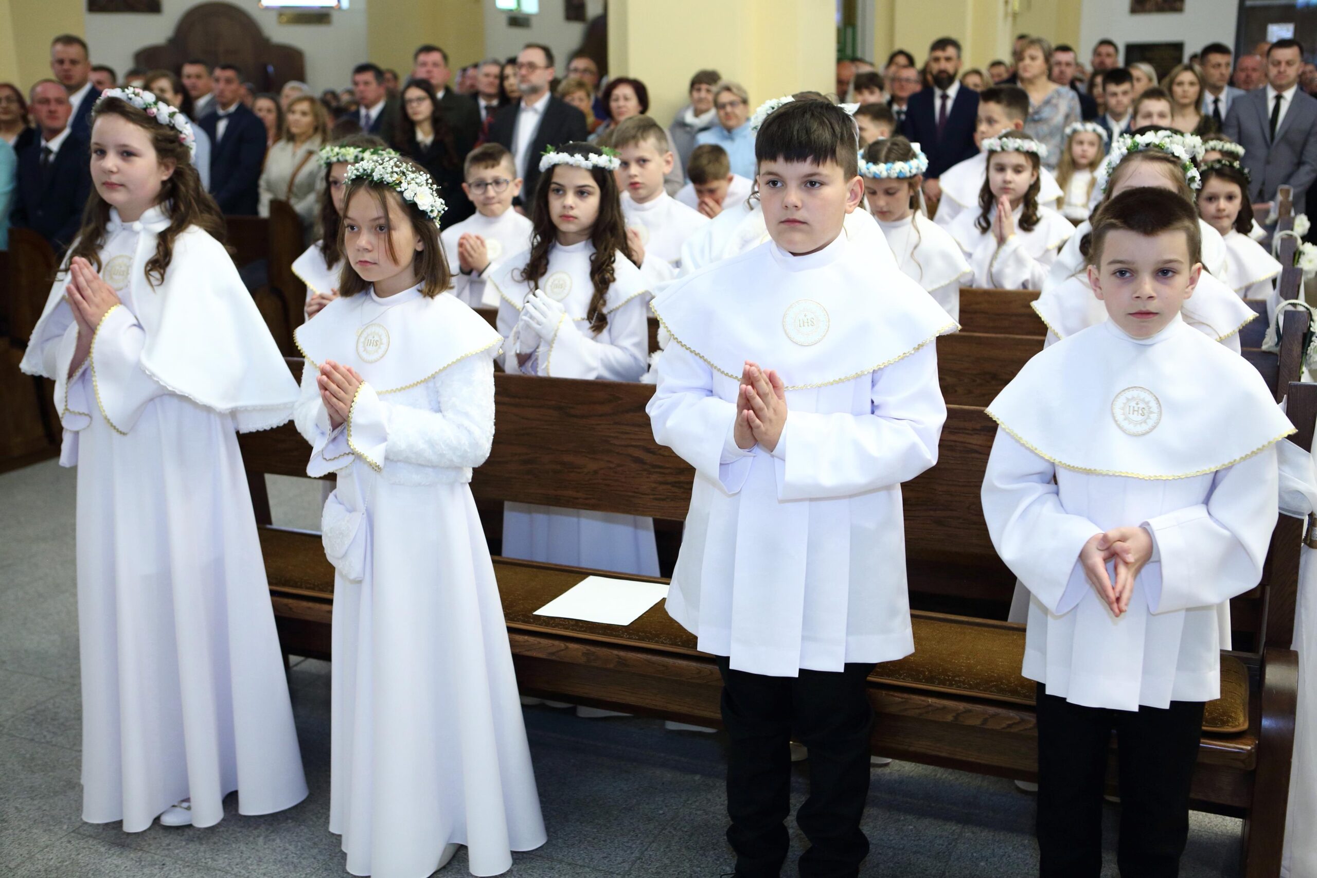 W niedzielę 7 maja 2023 roku o godz. 12.00, w naszej wspólnocie parafialnej odbyła się I Komunia Święta. 49 dzieci po raz pierwszy przyjęło Pana Jezusa do swojego serca. Dzieci i ich rodzice wytrwale się przygotowywali do tego wydarzenia poprzez modlitwę, udział w konferencjach formacyjnych oraz poznawanie poszczególnych prawd wiary. Ponadto dzień wcześniej dzieci i rodzice uczestniczyli w celebracji słowa Bożego, podczas której dzieci odnowiły przyrzeczenia chrzcielne, a potem przystąpiły do sakramentu pokuty i pojednania.