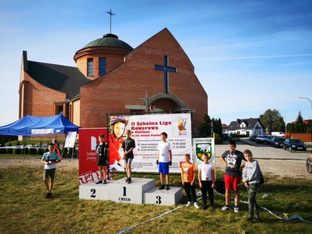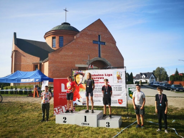 19 września na placu przy kościele odbył się pierwszy wyścig z cyklu „II Szkolnej Ligi Rowerowej ze Św. Janem Pawłem II”. Do uczestnictwach w zawodach zapisało sie ponad 80-ciu zawodników. Po ich oficjalnym rozpoczęciu uczestnicy wzięli udział w rozgrzewce prowadzonej przez p. Anię. Przy skocznej muzyce z utworu „Wyginam śmiało ciało”, bawili się wszyscy. Nastąpił długo wyczekiwany moment, pierwszy wyścig. Do rywalizacji stanęły dzieci do lat 4. Ich zadaniem było przejechanie jednego okrążenia dookoła kościoła, po kostce. W wykonaniu tego zadania pomagali im rodzice. Po wyrównanej walce uśmiechnięci zawodnicy przekroczyli metę. Poznaliśmy pierwszych wygranych, jak i przegranych. Drugi i trzeci wyścig, dla dzieci do lat 5 i 6, też miał być przeprowadzony na tej trasie. Jednak ze względu na prośby rodziców, organizatorzy zdecydowali się przenieść rywalizację na teren przygotowany dla starszych zawodników: jedno okrążenie pętli liczącej ok 1 km. I tak pięcio- i sześciolatki walczyły w znacznie trudniejszych warunkach niż przewidywano. Z postawionego im zadania wywiązały się znakomicie. Kolejni zawodnicy startowali w następnych grupach wiekowych, pokonując co raz to dłuższe trasy (dla starszych liczba pętli do pokonania była większa). Najwięcej zawodników walczyło oczywiście w młodszych grupach wiekowych. Atrakcją rywalizacji był start zawodników, którzy ścigają się na co dzień w maratonach kresowych. Po każdym wyścigu następowała dekoracja zawodników medalami. Dodatkowo po zawodach każdy uczestnik wyścigu otrzymał wodę oraz był częstowany smacznym kurczakiem. Wszystkich zawodników zapraszamy do udziału w drugim i ostatnim wyścigu z cyklu „II Szkolnej Ligi Rowerowej ze Św. Janem Pawłem II” 17 października nad zalewem Żółtańce. Wtedy wręczone będą również puchary dla najlepszych w klasyfikacji generalnej (suma punktów zdobytych w dwóch wyścigach). Aby dzieci mogły uczestniczyć w tym wyścigu należy wypełnić formularz elektroniczny: https://forms.gle/fbctwzEyrXifSYKM8. Prosimy o to rodziców, tych które dzieci uczestniczyły w zawodach, jak i tych, które nie wystartowały.