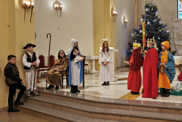W naszej wspólnocie parafialnej w niedzielę 9 stycznia 2022 roku po Mszy Świętej o godzinie 12.00 dzieci z naszej parafii i Szkoły Podstawowej w Żółtańcach zaprezentowały jasełka. Młodzi aktorzy, którzy wcielili się w konkretne postacie, przybliżyli wszystkim uczestnikom wydarzenia nocy betlejemskiej. Podczas występu wspólnie śpiewaliśmy kolędy razem z chórem ze Szkoły Podstawowej w Żółtańcach.