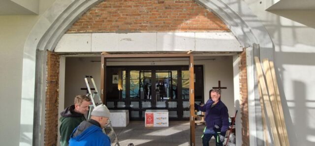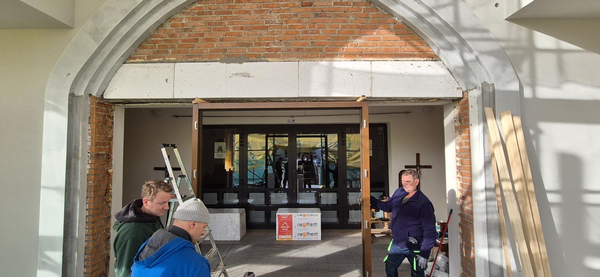Przyszedł czas, żeby założyć nowe, dębowe drzwi do naszego kościoła, które będą funkcjonalne, ale zarazem będą ozdobą naszej świątyni. 14 i 15 listopada zostały one zamontowane w miejsce starych drzwi sosnowych. Zaprojektowane i wykonane zostały przez p. Marka Mazura z miejscowości Kobiór na Śląsku. Zdobi je mozaika projektu p. Krzysztofa Gryksy. Wykonane zostały z drewna dębowego z odpowiednimi okuciami dającymi nam pewność, że będą służyły długie dziesięciolecia. Bóg zapłać wszystkim, którzy przyczynili się do ich powstania przez swoje ofiary.