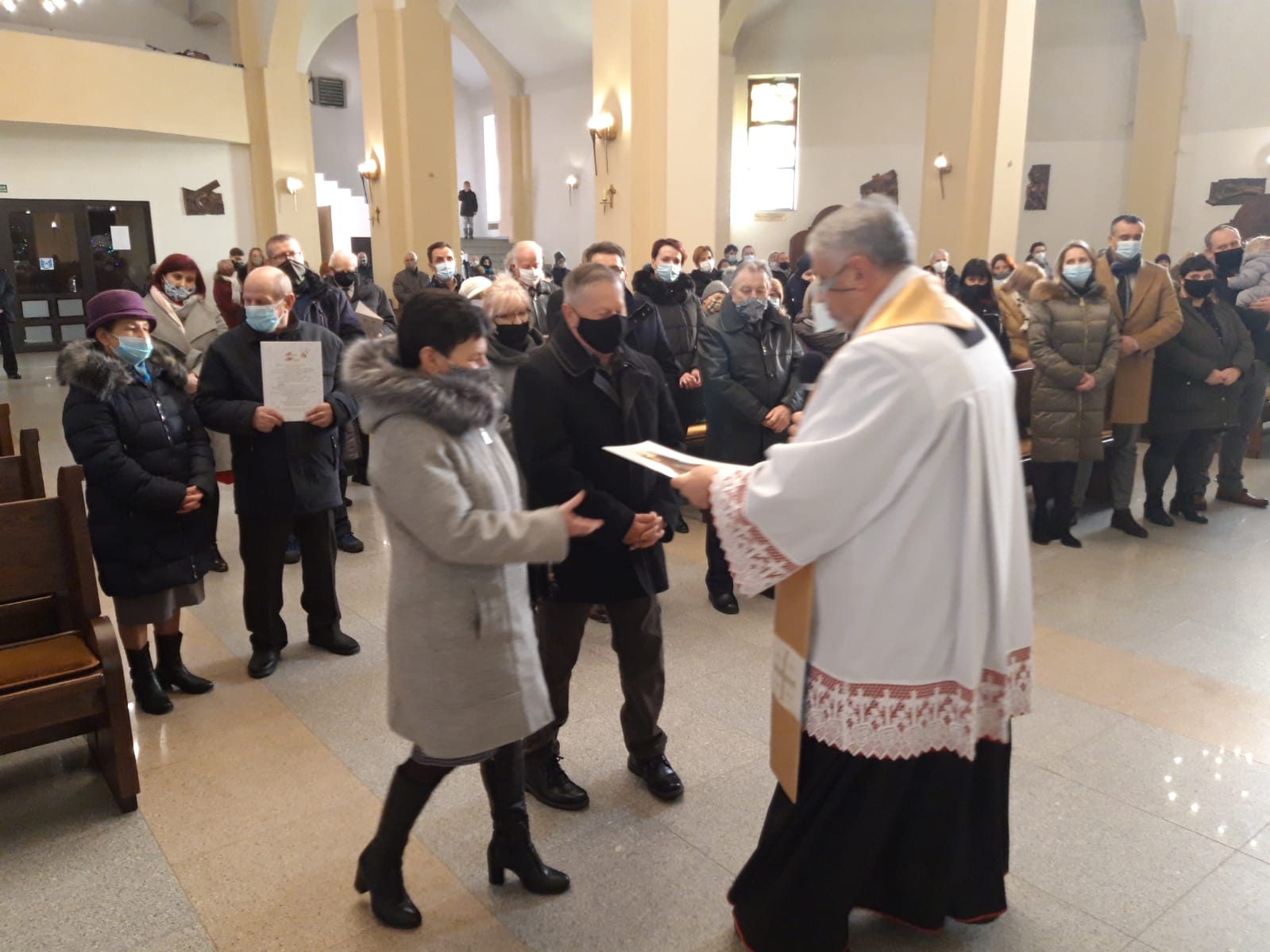 Niedziela Św. Rodziny jest dla naszej wspólnoty parafialnej dniem dorocznego odpustu. W tym uroczystym czasie był z nami ks. Marek Sawicki, wikariusz parafii Przemienienia Pańskiego w Lublinie. Celebrans sumy odpustowej głosił w naszej parafii przez cały dzień homilię. W swoim przepowiadaniu podkreślał znaczenie rodziny we współczesnym świecie oraz zwrócił uwagę na elementy, które pomagają jej dążyć do świętości. Homilista zaznaczył, że wspólna modlitwa, rodzinne uczęszczanie na Eucharystię, rozmowy ze sobą poszczególnych członków rodziny, zwłaszcza rodziców z dziećmi, przyczyniają się do tego, że rodzina staje się domowym Kościołem. Ks. Marek zaakcentował również formację poszczególnych członków rodziny w różnych grupach parafialnych. O uświetnienie liturgii sumy odpustowej zadbali przedstawiciele różnych wspólnot działających w naszej parafii. Małżonkowie przeżywający swoje jubileusze małżeńskie odnowili swoje przyrzeczenia oraz otrzymali okolicznościowe dyplomy upamiętniające przeżywaną uroczystość.