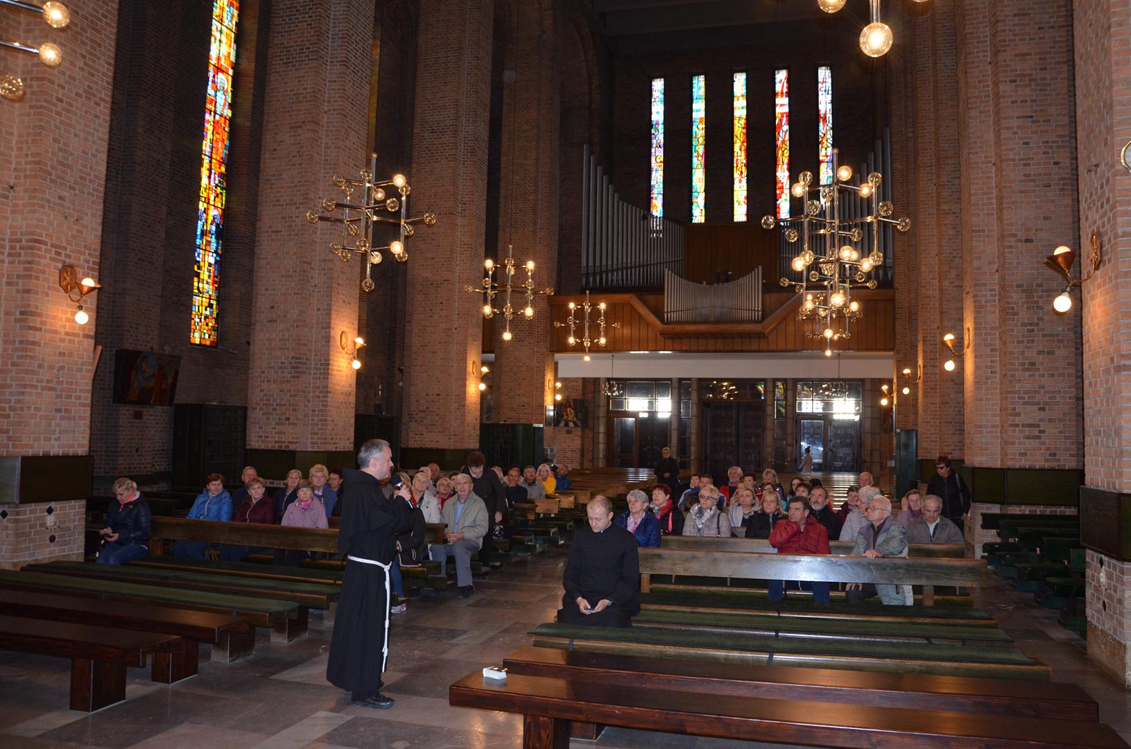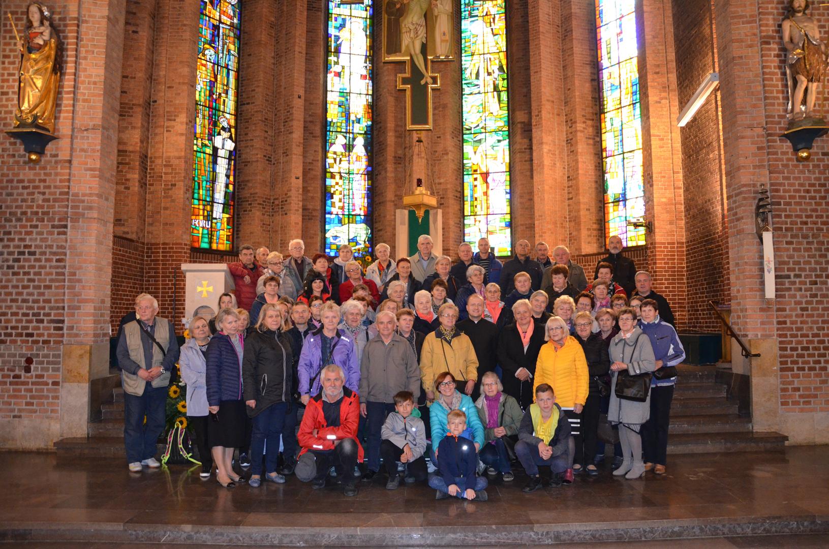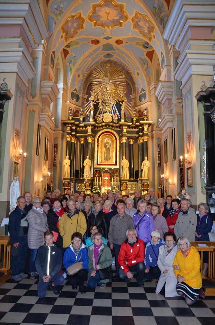 28 września nasza parafia zorganizowała pielgrzymkę do Strachocina. Po drodze zaplanowane były także nawiedziny sanktuariów w Radecznicy, Janowie Lubelskim, Ropczycach oraz Jaśle. Jak zawsze, tak i teraz na ten wyjazd zapisała się dość liczna grupa pielgrzymów, bo aż 67 osób. Naszą pielgrzymkę rozpoczęliśmy z rana ok. g. 5.15. Pierwszym punktem na naszym pątniczym szlaku było sanktuarium św. Antoniego w Radecznicy. Tam uczestniczyliśmy we mszy św. sprawowanej przez miejscowych zakonników. Poznaliśmy historię kultu św. Antoniego z Padwy, który objawił się na tej ziemi. Chciał aby na miejscowym wzgórzu wybudowano świątynię. Tak też się stało. Po modlitwie i zakupie pamiątek wyruszyliśmy w dalszą drogę. Z miejscowości, która jest wizytówką Roztocza udaliśmy się na jego zachodnią część, która łączy w sobie południowe skraje Wyżyny Lubelskiej jak i północny kraniec Kotliny Sandomierskiej. To oczywiście Janów Lubelski, który znany jest od XVII w. z objawień Matki Bożej jakie miały tu miejsce. Wkrótce wybudowano tam świątynię, która jako sanktuarium jest celem wielu pielgrzymek, także i naszej. Po zapoznaniu się z historią kultu maryjnego na tej ziemi udaliśmy się na zwiedzanie terenu dookoła świątyni. Następnie wyruszyliśmy w dalszą trasę. Przejeżdżaliśmy przez Podkarpacie, aż dotarliśmy do Ropczyc. Znajduje się tutaj Sanktuarium Najświętszej Marii Panny Królowej Rodzin. W ołtarzu głównym jak podaje sprawozdanie biskupie z 1721 r. umieszczony jest „Imago miraculosa” – cudowny wizerunek Maryi. Po modlitwie wyruszyliśmy w dalszą trasę, tym razem niedaleko, bo do Jasła. Wstępnie mieliśmy zaplanowane nawiedziny dwóch kościołów. Ostatecznie z powodów od nas niezależnych skończyło się na modlitwie i zwiedzaniu miejscowego sanktuarium. Poznaliśmy piękną historię tej świątyni oraz kultu jakim jest tutaj czczony św. Antoni z Padwy. Po wykonaniu pamiątkowych zdjęć opuściliśmy Jasło i udaliśmy się do Strachocina. Miejscowość, która dopiero od niedawna zaczynać być celem wielu pielgrzymek. To wszystko za sprawą św. Andrzeja Boboli, który upomniał się o kult na tej ziemi. W minionym stuleciu zjawiał się w nocy na miejscowej plebanii wprawiając w zakłopotanie wielu miejscowych duszpasterzy. Dopiero obecny proboszcz ks. Józef Niżnik nawiązał kontakt z tajemniczym przybyszem. Od tego czasu tą niewielką miejscowością na Podkarpaciu zaczęli się interesować niemal wszyscy, którzy pielgrzymują do miejsc świętych. Z racji innych obowiązków duszpasterskich w świątyni przywitały nas siostry ze Zgromadzenia Sióstr Franciszkanek Rycerstwa Niepokalanej. Dzięki Nim poznaliśmy życie św. Andrzeja. Jego droga do świętości była pełna poświęcenia i wyrzeczeń. Dość często zmieniał miejsce swojej posługi kapłańskiej. Jako gorliwy jezuita przemierzał Podlasie w głoszeniu Słowa Bożego. Przez prawosławnych był pogardliwie nazywany „duszochwatem”. Zginął okrutnie torturowany. Po wysłuchaniu historii życia św. Andrzeja mogliśmy ucałować Jego relikwie. Następnie udaliśmy się do „Bobolówki”, miejsca gdzie urodził św. Andrzej. Po nawiedzinach tego miejsca udaliśmy się w podróż powrotną do Chełma.