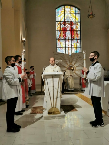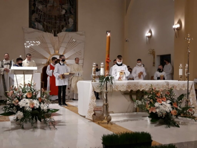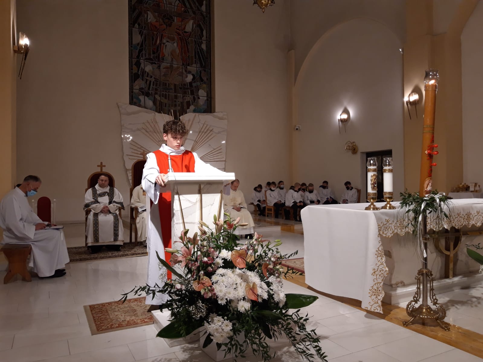 Triduum Paschalne to trzy dni obchodów najważniejszych wydarzeń zbawczych: męki, śmierci oraz zmartwychwstania Pana Jezusa. W Wielki Czwartek sprawowana jest Msza Wieczerzy Pańskiej. Po liturgii Najświętszy Sakrament przenoszony jest do ołtarza ciemnicy.