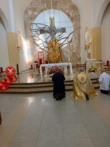 W niedzielę 16 czerwca 2024 r. przeżywaliśmy w naszej parafii wizytację kanoniczną. Przeprowadził ją ksiądz biskup Adam Bab. Wizytacja odbywa się co 5 lat i jest okazją, aby pasterz naszej diecezji zobaczył, jak funkcjonuje parafia. Przed Mszą św. o godz. 7.00 nastąpiło powitanie biskupa przy wejściu do kościoła przez ks. proboszcza i przekazanie mu kluczy do świątyni. Jednym z elementów wizytacji jest złożenie sprawozdania z życia parafii przez ks. proboszcza, które miało miejsce podczas Mszy św. o godz. 9.00. Przed Mszą św. o godz. 10.30 biskup Adam poświęcił odnowioną dzwonnicę i komplet dzwonów. Podczas Mszy św. o godz. 12.00 razem z dyrekcją, gronem pedagogicznym i uczniami Szkoły Podstawowej w Żółtańcach podziękowaliśmy Bogu za mijający rok szkolny. Natomiast o godz. 17.00 ksiądz biskup celebrował Eucharystię, podczas której udzielił sakramentu bierzmowania naszej młodzieży. W ciągu całego pobytu w naszej parafii biskup Adam głosił homilię, posługiwał w konfesjonale, ochrzcił dwoje dzieci oraz odwiedził chorych z posługą sakramentalną. Ponadto spotkał się z radą parafialną oraz przedstawicielami poszczególnych grup duszpasterskich działających przy naszej parafii.